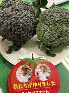 きくたけファーム(園芸部)の2人がプランターに植えたブロッコリーを収穫してくれました。