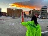 6日(火)、地域の交通安全を願い、警察官の方と協力して横断歩道で事故防止活動をしました。
