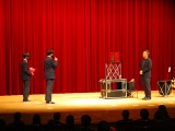 3月1日(水)、中区役所ホールにて「大道芸人から学ぶ人生の楽しみ方」と題して、Mr.↓YU↑(ミスターユー)氏による生徒参加型視聴覚講座が実施されました。